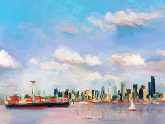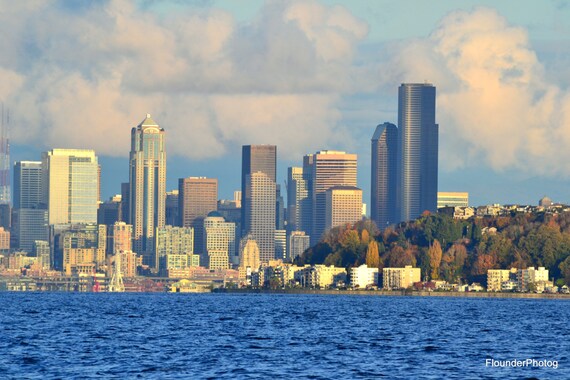 Alki Beach Seattle Skyline From Puget Sound Scenic City Sea Etsy Simple Beach Wedding Dresses Singing Beach Ma